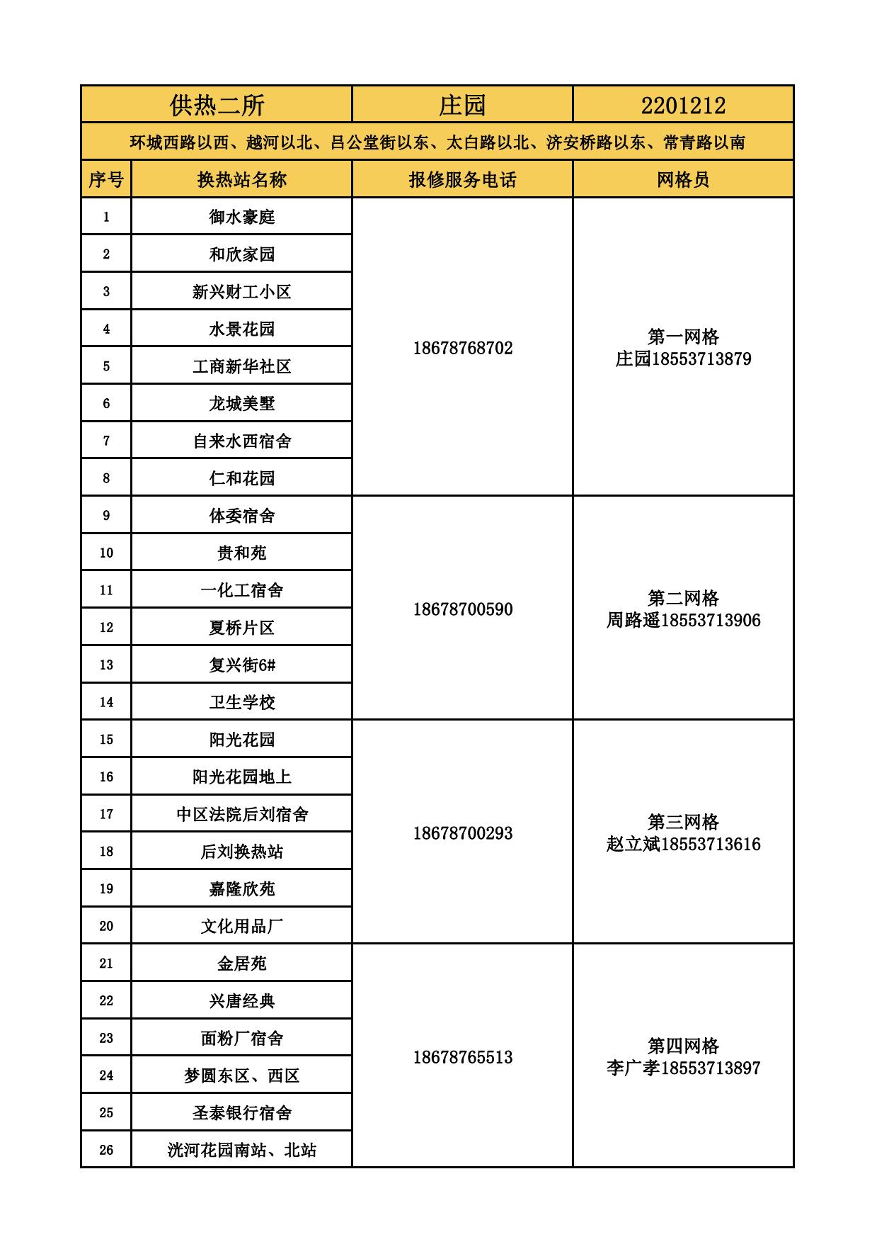 四和供熱公司各供熱服務(wù)所聯(lián)系方式及網(wǎng)格員聯(lián)系方式